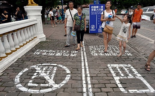 Ở Trung Quốc có một làn đường dành riêng cho những người 'nghiện' di động.