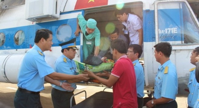 Trưa 28/12, chị Phạm Thị Thơm - nhân viên Vùng 5 Hải quân đã được chuyển lên Bệnh viện quân y 175 (TP.HCM) bằng trực thăng của Bộ Quốc phòng để cấp cứu vì bị côn trùng đốt.