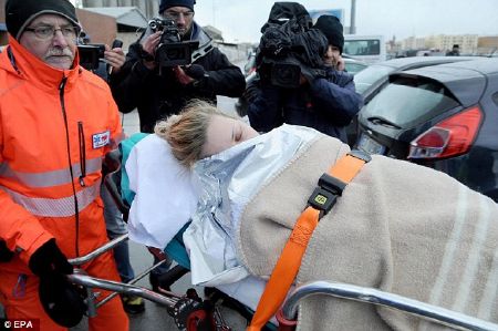 Chùm chăn kín mít và một số người còn phải băng bó, 49 trong số 478 hành khách và thành viên thủy thủ phà Norman Atlantic đã rời khỏi tàu hàng mang tên “Spirit of Pireus” sau khi được đưa về tới cảng Bari của Ý.