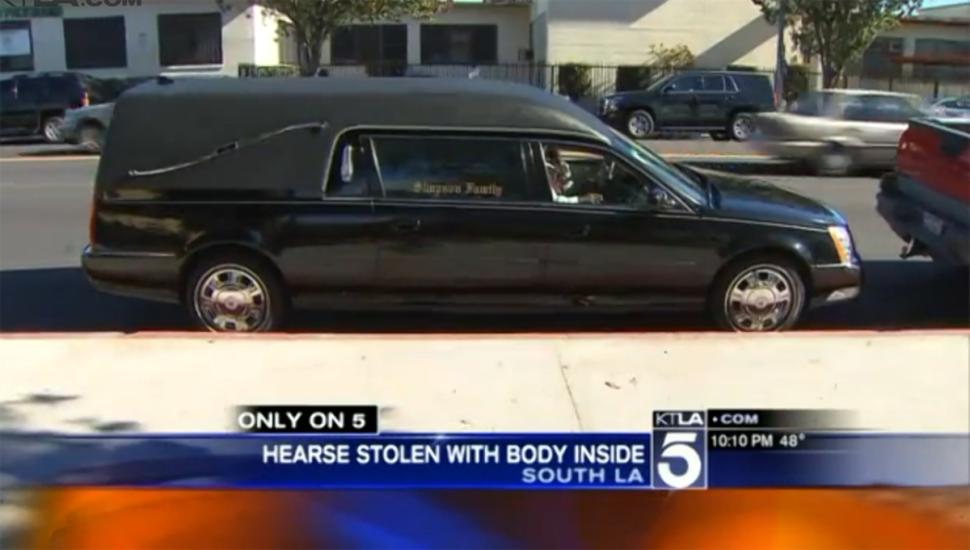 Chiếc xe tang chứa thi thể một thanh niên đã bị người đàn ông tâm thần không ổn định đánh cắp khi tang lễ sắp được cử hành.