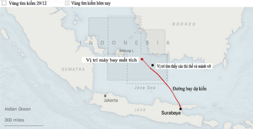 Sáng ngày 28/12, máy bay mang số hiệu QZ8501 cất cánh từ Surabaya thuộc Indonesia đi Singapore, mất tích trong hành trình. Sau ba ngày tìm kiếm, hôm qua, những thi thể và mảnh vỡ đầu tiên của chiếc máy bay này được tìm thấy trên biển Java.