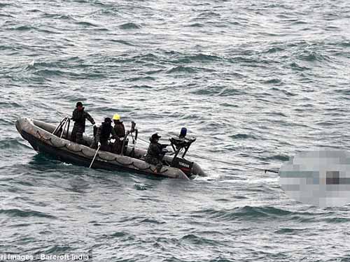 Hải quân Indonesia sử dụng tàu cao tốc để thu thập thi thể nạn nhân hôm 2-1Ảnh: Barcroft India