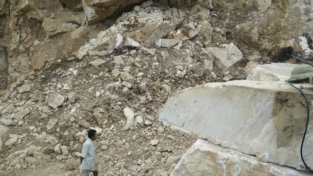 Người công nhân đang điều khiển máy xúc đào lấy đá thì bất ngờ một tảng đá lớn đổ sập xuống đè nát chiếc máy xúc. Rất may mắn là chỉ một công nhân bị thương, nhập viện cấp cứu.
