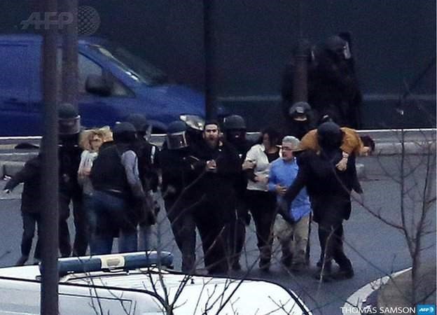 AFP đăng ảnh thêm các con tin được đưa ra khỏi siêu thị Do Thái ở đông Paris sau khi kẻ cầm giữ họ bị bắn chết.