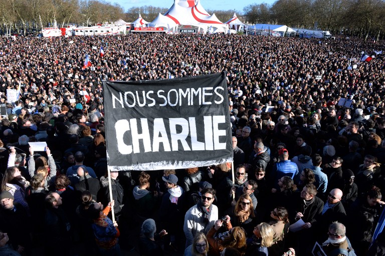 Trong một bài phát biểu sau khi 2 vụ bắt cóc con tin trong ngày 9/1 kết thúc, Tổng thống Pháp đă nói rằng: “Tôi kêu gọi tất cả những người dân Pháp sẽ xuống đường trong ngày Chủ nhật, để cùng nhau bảo vệ những giá trị dân chủ, tự do của nước Pháp”.