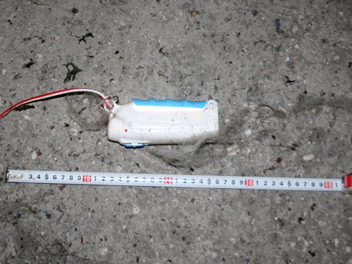 Một loại kíp nổ tự chế kích bằng điện thu được tại hiện trường ngày 31.12.2014