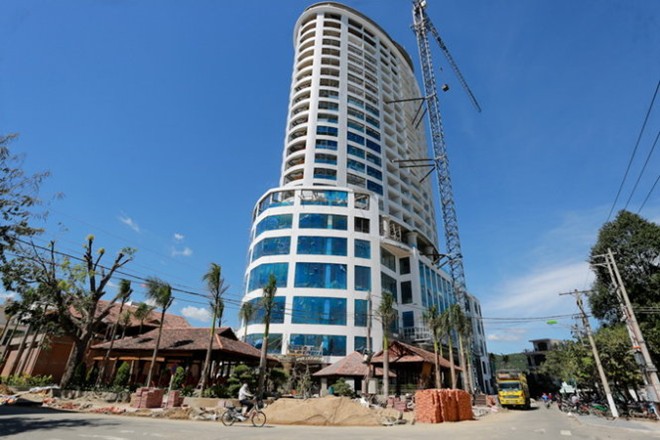 Khách sạn Bạch Việt Nha Trang đang xây dựng, nơi nữ công nhân tử vong sau khi rơi từ tầng 26.