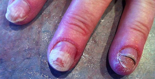Theo tiến sĩ David Orton từ Hiệp Hội Da Liễu Anh (The British Association Of Dermatologists): “dị ứng gây ra một số vấn đề quanh vùng da móng tay chằng hạn như ngứa thậm chí hen xuyễn”. Một kĩ sư từ Leicestershire, chị Amber Varnham cho biết: “tôi đã thấy rất nhiều trường hợp rất nghiêm trọng thậm chí bị lật hẳn móng tay”.