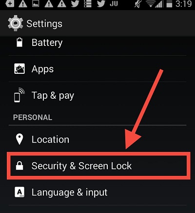 Trước tiên, bạn hãy truy cập vào Settings và nhấn vào tùy chọn nào có từ “Security”