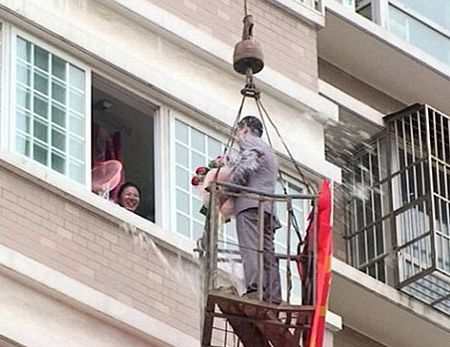 Một chàng trai Trung Quốc đã bị ê mặt khi dàn dựng màn cầu hôn công phu nhưng lại bất ngờ gặp phải kết cục thê thảm. Zhu Lei đã thuê một chiếc cần trục để cẩu anh lên căn hộ ở tầng 6 của người yêu ở thành phố Phụ Dương, tỉnh An Huy, Trung Quốc.