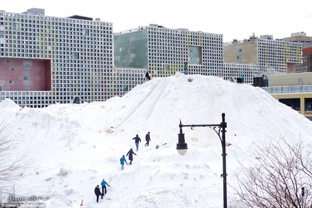 "Núi tuyết" với chiều cao tương đương tòa nhà 5 tầng xuất hiện trong khuôn viên của Viện Công nghệ Massachusetts, thành phố Boston, bang Massachusetts hôm 20/2. Tại những nơi khác trong thành phố Boston, độ dày của tuyết lên tới 2,5 m.