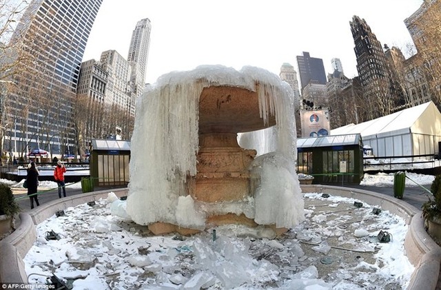 Đài phun nước Josephine Shaw Lowell tại thành phố New York, Mỹ, đóng băng hôm 21/2. Ảnh: AFP
