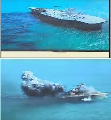 Mô hình tàu sân bay Mỹ bị phá hủy trong cuộc tập trận của Iran.