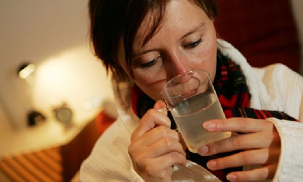 Uống nước trái cây tự nhiên và nước thường xuyên sẽ làm dịu cơn đau họng và sẽ giúp thông thoáng mũi. Bên cạnh trà, nó được khuyến khích để tiêu thụ súp gà vì nó cung cấp cho cơ thể với các khoáng chất cần thiết và chất điện giải.