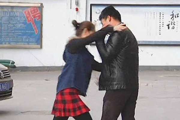 Wang Chen bị bạn gái hành hung ngay trước cửa bệnh viện thẩm mỹ. Ảnh: CEN