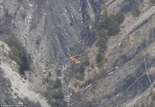 Trực thăng cứu hộ bay trên khu vực bên dưới có những mảnh vỡ của 4U9525. Ảnh: Matrixpictures Theo đài BBC, một số mảnh vỡ có kích cỡ như chiếc xe hơi. Ảnh: Matrixpictures