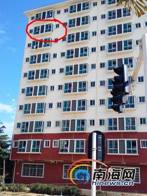 Trong khuôn viên trường Đại học Y Hải Nam, khoảng 4h chiều ngày 27/3, ông Vương cho hay khi đang rời xe khỏi sân thì nghe thấy một tiếng động khá mạnh từ trên cao rơi xuống. Nghĩ hàng trong xe rơi ra ngoài, ông xuống xe và kinh hoàng phát hiện một đứa bé sơ sinh trước mặt mình. Nhìn nhanh lên trên là một nữ sinh, cô nhanh chóng rời khỏi tầm mắt của ông.