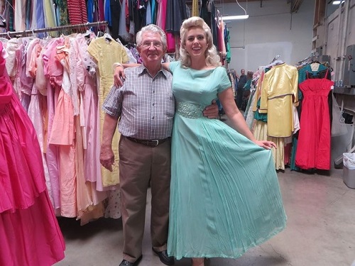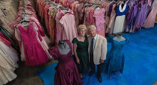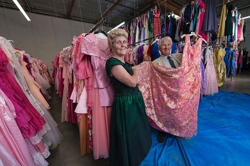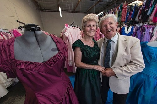 Ông Paul và vợ chụp ảnh bên cạnh những chiếc váy ông đã mua suốt 56 năm qua.