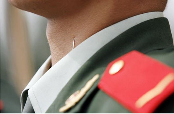 Để binh lính Trung Quốc tập trung lại ngẩng đầu vừa thẳng, vừa cao, người ta thường đính vào cổ áo họ một chiếc đinh ghim.