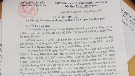 Báo cáo tóm tắt vụ việc bà Nguyễn Hồng Lương tự thiêu của UBND phường Điện Biên.