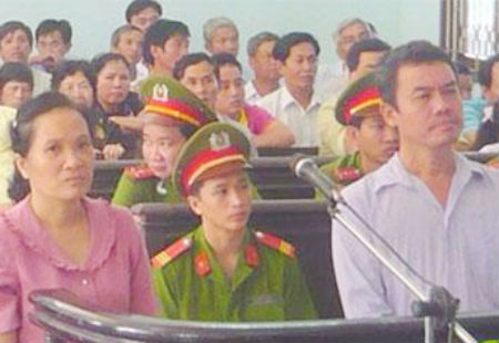 Vợ chồng Quyên và Tám tại phiên tòa xét xử.