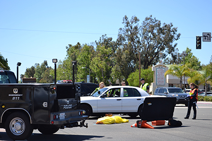 Xác ni cô được phủ khăn màu vàng nằm dưới đường trong tai nạn xảy ra ở góc đường Bolsa và Brookhurst vào trưa thứ Hai, 27 tháng Tư, 2015. (Thanh Phong/Viễn Đông)