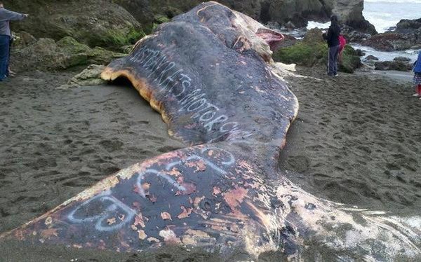 Mới đây ở California, Mỹ, một chú cá nhà táng khổng lồ đã chết, dạt vào bở biển. Điều đáng nói là những dòng chữ xuất hiện trên xác của con cá nhà táng khiến những nhà bảo vệ quyền động vật vô cùng bức xúc.