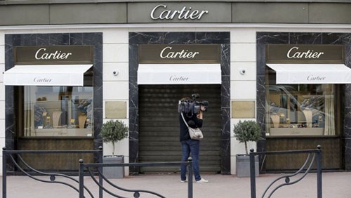 Bên ngoài hiệu Cartier bị cướp tại Cannes.