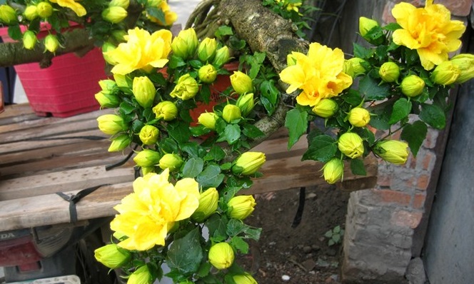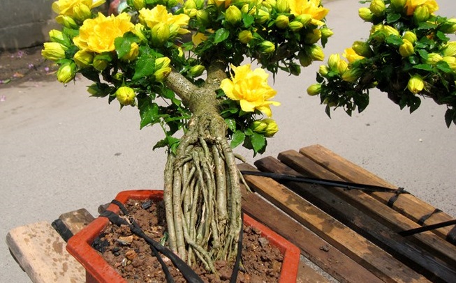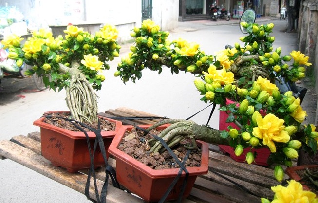 Những chậu cây cảnh phải nói là rất nhỏ bé có hoa rất nhiều màu vàng lại được bán với giá rất cao đến cả triệu bạc, được giới thiệu là những cây Bonsai đẹp có tuổi đời lên đến cả gần 10 năm và cho hoa rất đều và đẹp, được bán rất nhiều tại Hà Nội.
