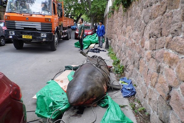 Vietbf.com - Choáng với đại gia người Trung Quốc vào ngày 19/5 vừa qua đã mua cả 1 con cá mập về xẻ thịt làm thức ăn cho họ hàng, vì đại gia này đã từng mua cá mập về chia cho hàng xóm thưởng thức, cho nên lần này đại gia này cũng không ngoại lệ, và những người đi đường tại thành phố Thanh Đảo, tỉnh Sơn Đông (Trung Quốc) đã rất ngạc nhiên khi chứng kiến cảnh tượng một con cá mập đang được vận chuyển vào một căn hộ bên ven đường và đã ghi lại vài hình ảnh cá mập dưới đây.