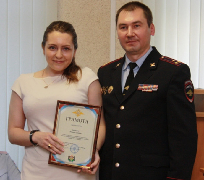 Lyudmila Makhmudova tại lễ trao bằng khen của cảnh sát. (Ảnh: mdv.ru)