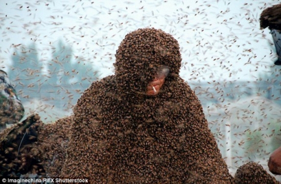 Old  Default Dựng tóc gáy chứng kiến người đàn ông TQ đạt kỷ lục Guiness với 1 triệu con ong bu vào người