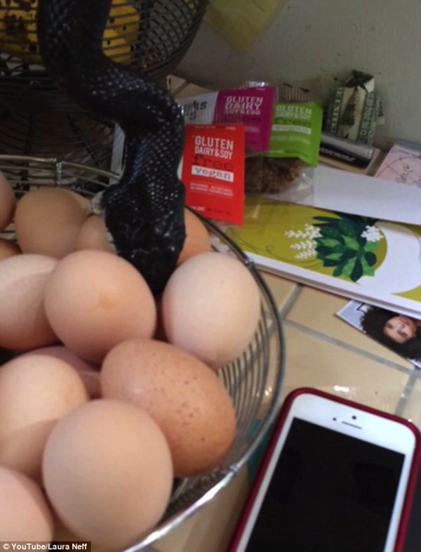 Cô Laura Neff sau đó bình tĩnh và kiên nhẫn quay lại cảnh con rắn cố nuốt trọn một quả trứng gà. Cô cũng đợi tới khi con rắn “chén” xong bữa rồi mới cố gắng đuổi nó ra khỏi nhà.