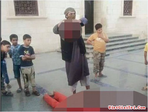 Đao phủ cầm thủ cấp của anh Shurgawi giơ lên cao. Ảnh: Daily Mail