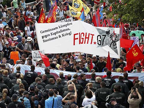 Người biểu tình phản đối hội nghị G7 tại Garmisch-Partenkirchen (miền Nam nước Đức) ngày 6-6. Ảnh: REUTERS