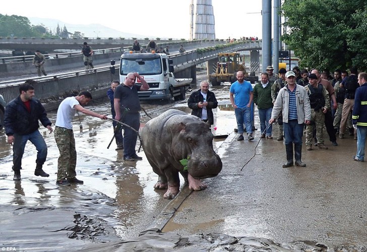 Dưới đây là những hình ảnh về những con thú dữ đã bị xổng chuồng sau khi lũ lớn ập vào thủ đồ Gruzia.