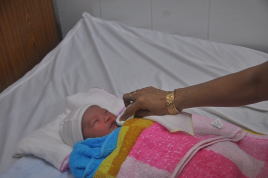 Theo các bác sĩ tại Bệnh viện quận 9, cháu bé cấp cứu trong tình trạng cuống rốn bị cắt sát, chảy nhiều máu. Bệnh viện đã tiến hành khâu lại vết cắt, đồng thời đưa cháu bé đi chích ngừa. Tối cùng ngày, bé trai được chăm sóc đặc biệt tại khoa Sản của bệnh viện và hiện sức khỏe đã ổn định, trọng lượng 3,4 kg.