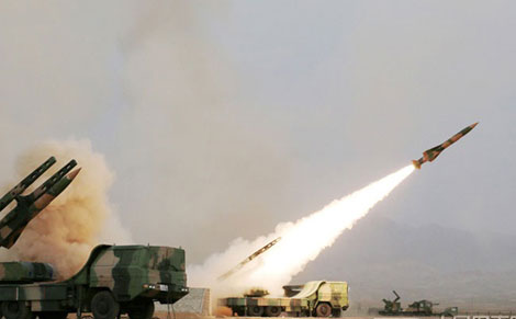 Hệ thống tên lửa HQ-12 khai hỏa trong tập trận.