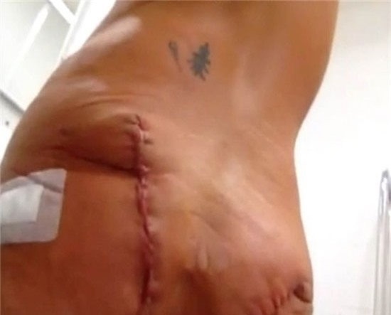 vòng ba cô rất xấu xí với hai vết sẹo chéo lớn. Heidi, 36 tuổi chia