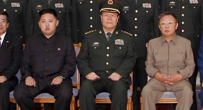 Quách Bá Hùng (giữa) chụp ảnh cùng nhà lãnh đạo Triều Tiên Kim Jong Il (bên phải) và con trai Kim Jong Un (bên trái) hồi tháng 10/2010. Ảnh: Reuters.