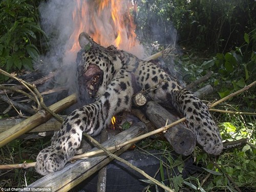 Những người dân này đã dùng gậy tấn công và đánh chết một con báo hoang dã quý hiếm, trước khi đưa nó lên thiêu cháy.
