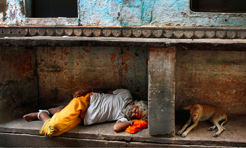 Một người Ấn Độ ngủ tại Varanasi. Ảnh: AP