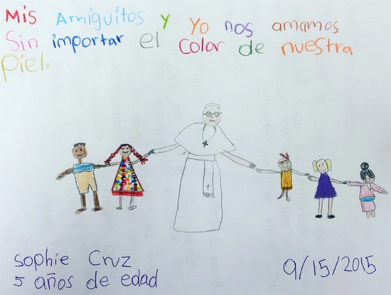 Bé gái sau đó được xác định là Sophie Cruz, 5 tuổi, tới từ bang California. Trong lá thư, cô bé đã nhờ Giáo hoàng đề nghị Tổng thống Mỹ Barack Obama cải cách chính sách nhập cư để các di dân không bị trục xuất khỏi nước Mỹ.