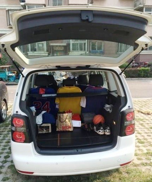 Bà cụ phải ngồi trong cốp xe để nhường chỗ cho cháu nằm