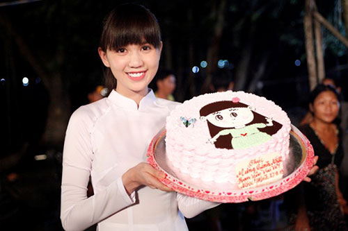 Nữ hoàng nội y Ngọc Trinh mặc áo dài giản dị đón tuổi 25 trên phim trường. Nữ diễn viên chính của “Vòng eo 56” cảm thấy vô cùng hạnh phúc và ấm áp khi được mọi người tổ chức sinh nhật trùng đúng ngày trung thu năm nay. Hãy cùng vietbf khám phá nhé!