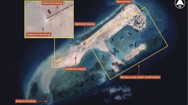 Trung Quốc xây dựng công trình trái phép trên đá Gạc Ma thuộc quần đảo Trường Sa của Việt Nam. Ảnh: IHS Jane’s Defense