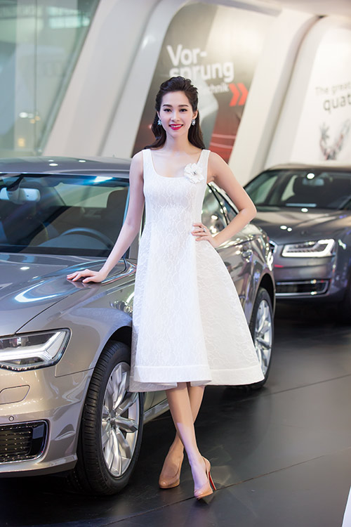 Chiều ngày 12/10, hoa hậu Đặng Thu Thảo và siêu mẫu Thanh Hằng cùng xuất hiện tại một triển lãm xe hơi nổi tiếng ở Hà Nội. Cả hai trở thành tâm điểm của sự chú ý khi cùng nhau diện trang phục màu trắng hết sức tinh tế. Đặng Thu Thảo nhẹ nhàng với bộ đầm ôm dáng màu trắng, điểm nhấn ở vòng eo phù hợp với vóc dáng mảnh mai của Thu Thảo.