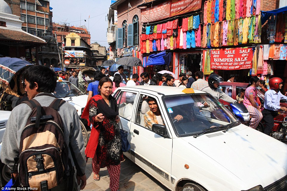 Nhiều khách du lịch tỏ ra bối rối không hiểu sẽ qua đường kiểu gì khi đường phố ở Kathmandu có mật độ giao thông dày kín thế này.