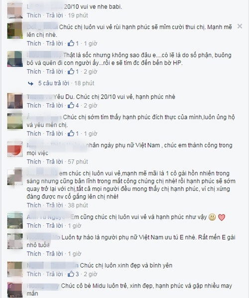 Chỉ sau 2 giờ đăng tải, lời chúc mừng của Midu đã nhận được hơn 17.000 lượt like (thích) và nhiều chia sẻ. Rất nhiều người cũng gửi lời động viên Midu mạnh mẽ vượt qua "tâm bão" và sớm trở lại với hình ảnh một cô gái xinh đẹp, tự tin.