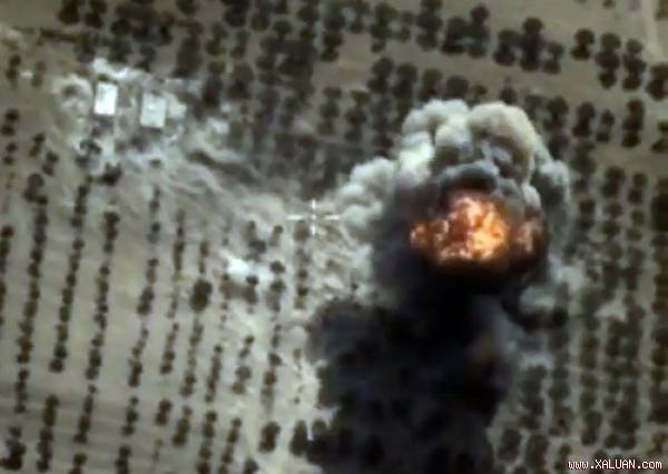 Một mục tiêu của phiến quân tại Syria trúng bom của không quân Nga. Ảnh: RT